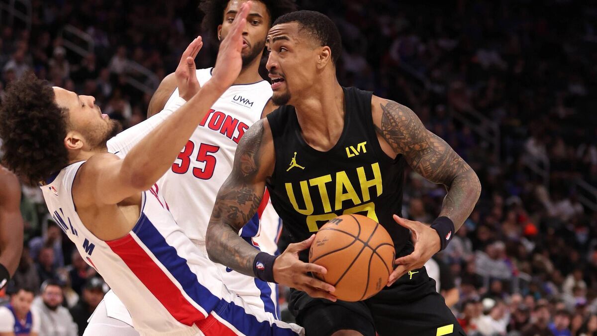 WORST NBA TEAM EVER: John Collins of the Utah Jazz drives against Cade Cunningham of the Detroit Pistons. who are enduring a shocking run of form. (Photo by Gregory Shamus/Getty Images)