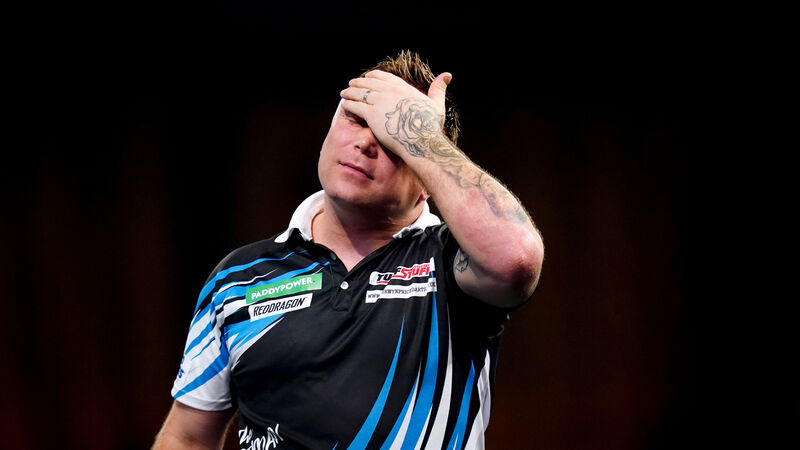 DUMPED OUT: Gerwyn Price walks off dejected after losing to Brendan Dolan on day eleven of the Paddy Power World Darts Championship at Alexandra Palace, London. Pic: John Walton/PA