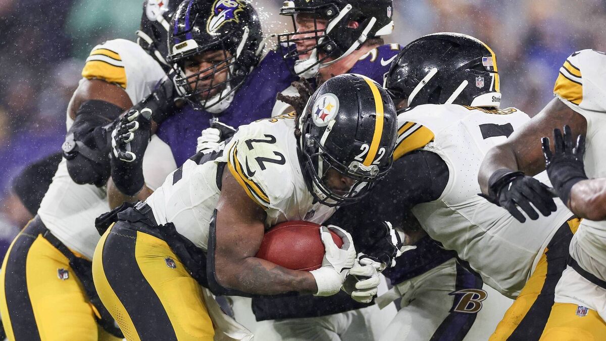 THE TRENCHES: Najee Harris of the Pittsburgh Steelers runs the ball up the field. Picture: Patrick Smith/Getty Images)