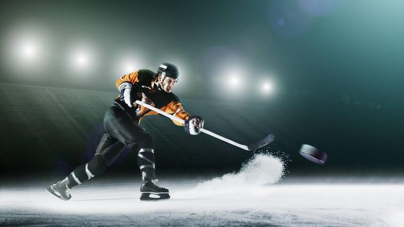 Stadium, cold, ice, ice hockey stick, light flare, skates, sports clothing, protective clothing, competition, ice rink, skates, ice spray, green.