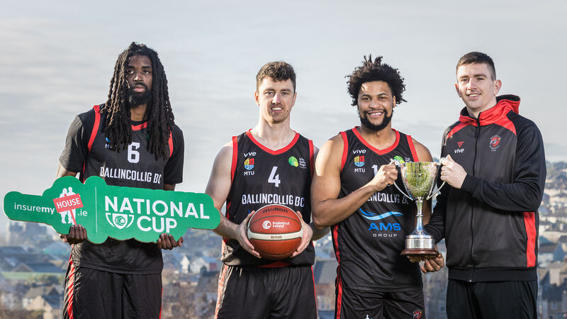ON THE VERGE: Irish Guide Dogs Ballincollig @MTU's Andre Nation, Adrian O’Sullivan and Shawndale Jones Jr. with head coach/player Ciarán O’Sullivan at Bell’s Field, Cork ahead of the InsureMyHouse.ie National Cup finals. Pic: Laszlo Geczo, Inpho