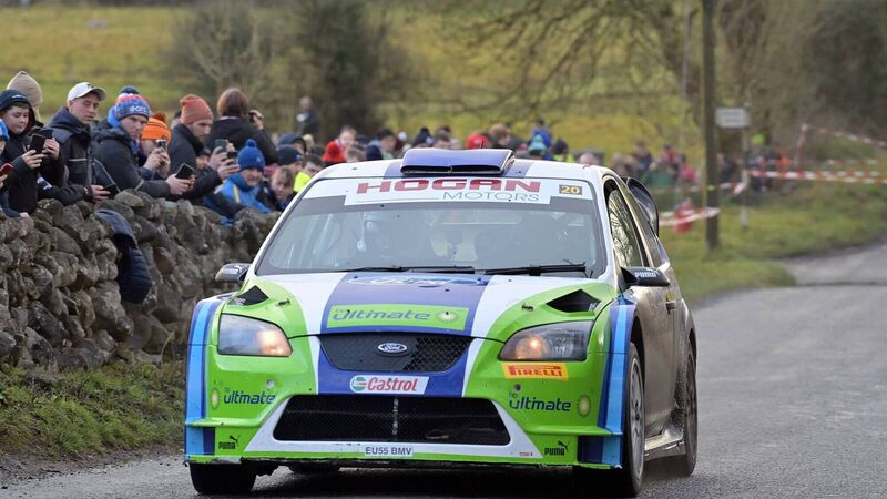 Five-time Irish Tarmac champion and six-time Galway International Rally winner Austin MacHale (Ford Focus WRC) was one of the drivers fined. Pic: Martin Walsh.