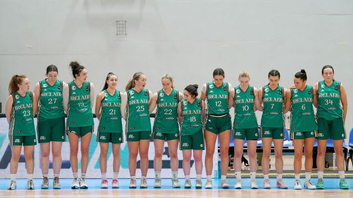 8 February 2024; The Ireland team before the FIBA Women's EuroBasket Championship Qualifier match between Israel and Ireland at the Rimi Olympic Centre in Riga, Latvia. Photo by Oksana Dzadan/Sportsfile