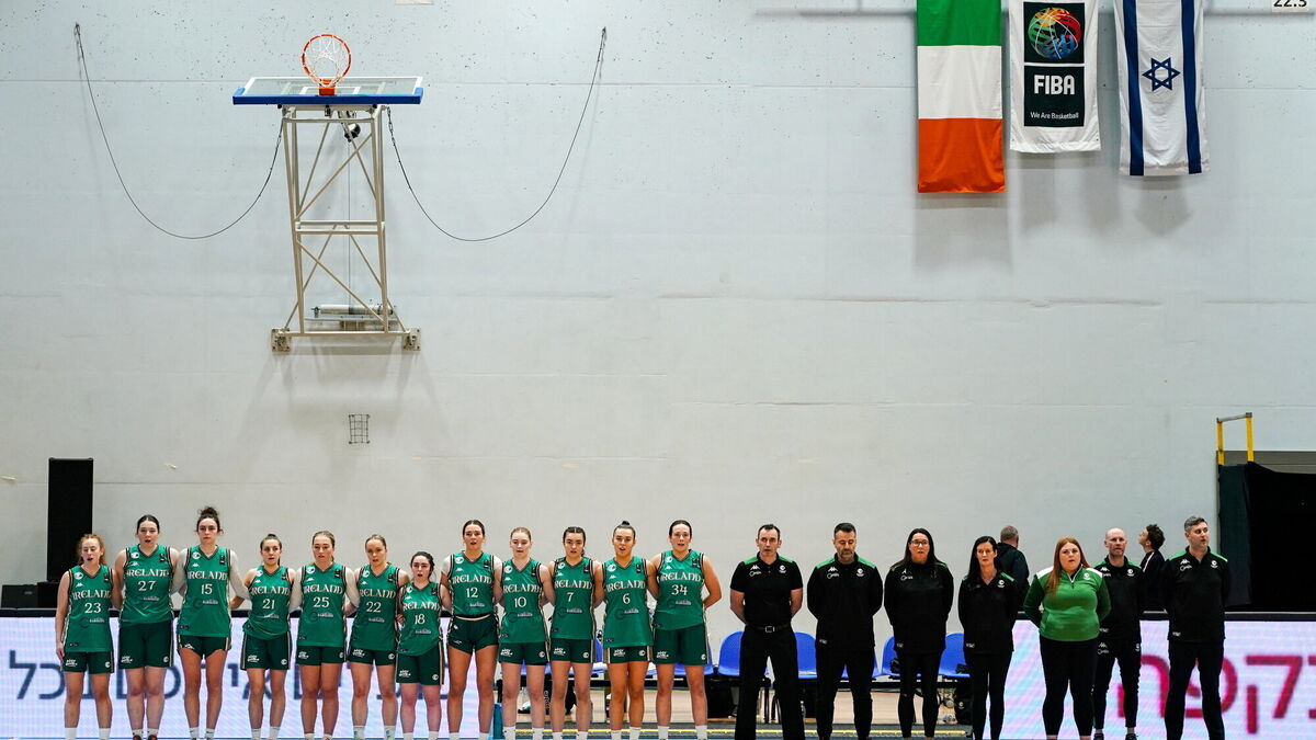 DIFFICULT WEEK: The Ireland team stand by their bench as they stand for their national anthem before the FIBA Women's EuroBasket Championship Qualifier match between Israel and Ireland at the Rimi Olympic Centre in Riga, Latvia. Pic: Oksana Dzadan/Sportsfile