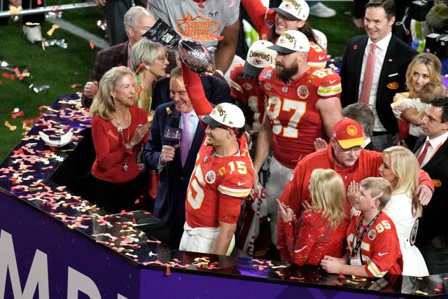Kansas City Chiefs quarterback Patrick Mahomes holds the Vince Lombardi Trophy (Ashley Landis/AP)