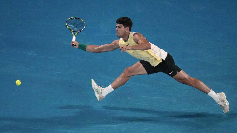 PREFERENCE: Carlos Alcaraz of Spain plays a forehand return to Alexander Zverev of Germany during their quarterfinal match at the Australian Open. Pic: Louise Delmotte, AP