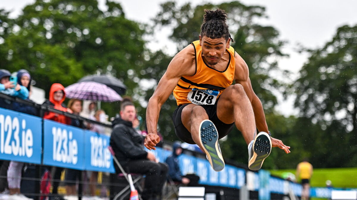 LEAPS AND BOUNDS: Reece Ademola of Leevale AC, Cork, competes in the men's long jump during day two of the 123.ie National Senior Outdoor Championships at Morton Stadium in Dublin. Pic: Sam Barnes/Sportsfile