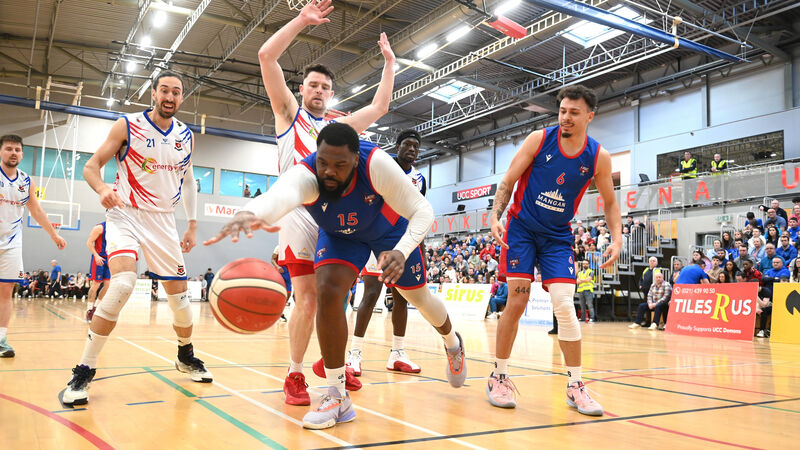 BASKETBALL WRAP: Elijah Tillman , UCC Demons loses control of the ball under the basket in the Mens Superleague derby game, UCC Demons vs Energywise Ireland Neptune at Mardyke Arena. Pic Larry Cummins