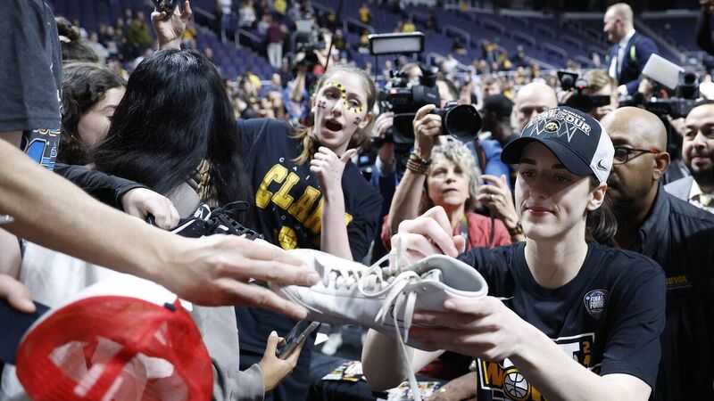 STAR TURN: THE Hawkeye's Caitlin Clark signs autographs after Iowa beat the LSU Tigers 94-87 in the Elite 8 round of the NCAA Women's Basketball Tournament in Albany, New York. (Photo by Sarah Stier/Getty Images)