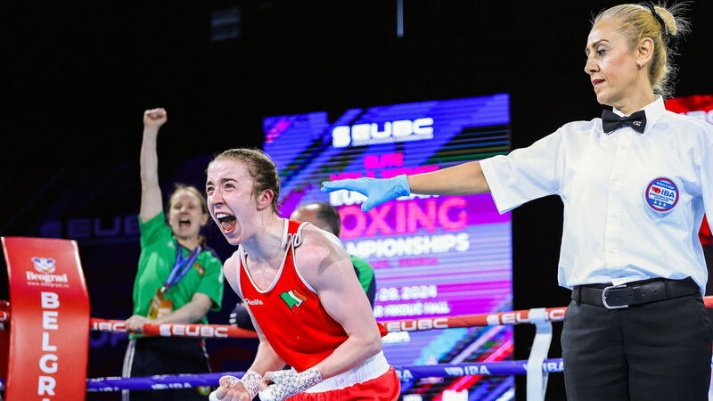 GOLD: Shannon Sweeney celebrates her victory over Zlatislava Gena Chukanova of Bulgaria. Pic: Nikola Krstic/Sportsfile