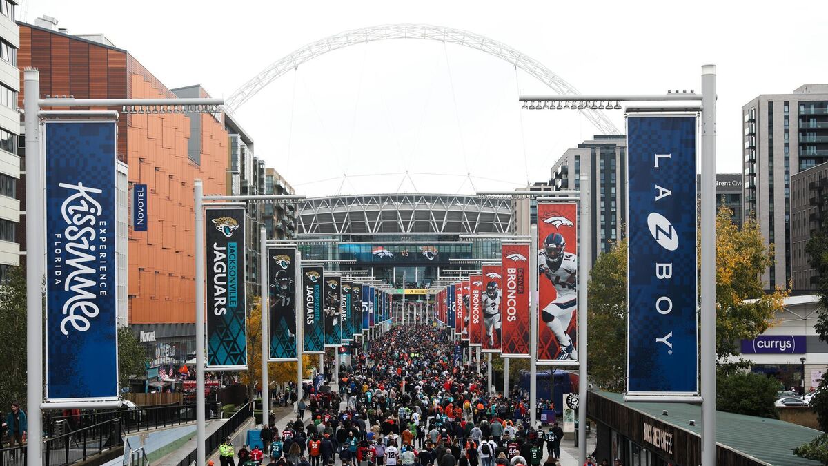 Fans walk down Wembley way ahead of the NFL International match at Wembley Stadium.