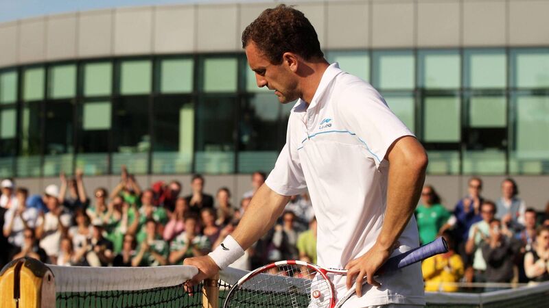 NETBUSTER: Conor Niland of Ireland reacts after losing his first round match against Adrian Mannarino of France on Day Two of Wimbledon 2011. (Photo by Oli Scarff/Getty Images)