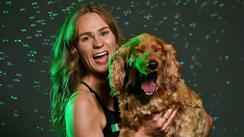 IN AT THE DEEP END:; Swimmer Ellen Walshe with her Cocker Spaniel Barley. Photo by Sam Barnes/Sportsfile
