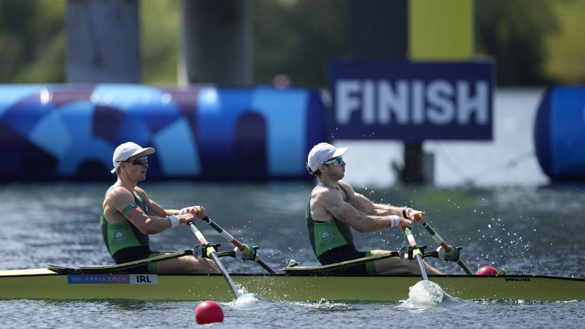 LAYING DOWN THE GAUNTLET: Ireland's Paul O'Donovan and Fintan McCarthy compete in the lightweight men's double sculls rowing heat. Pic: AP Photo/Ebrahim Noroozi.