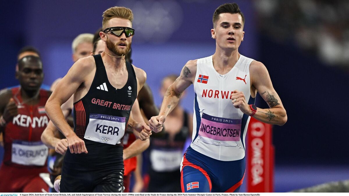 Great Britain's Josh Kerr and Norway's Jakob Ingebrigtsen during the men's 1500m Olymic semi-final. Picture: Sam Barnes/Sportsfile