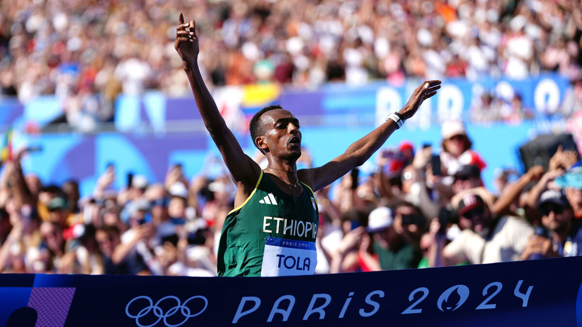 Ethiopia's Tamirat Tola won gold in the men's marathon at the Paris Games on Saturday while Kenyan Eliud Kipchoge, who had been bidding for an unprecedented third consecutive Olympic crown, failed to finish.