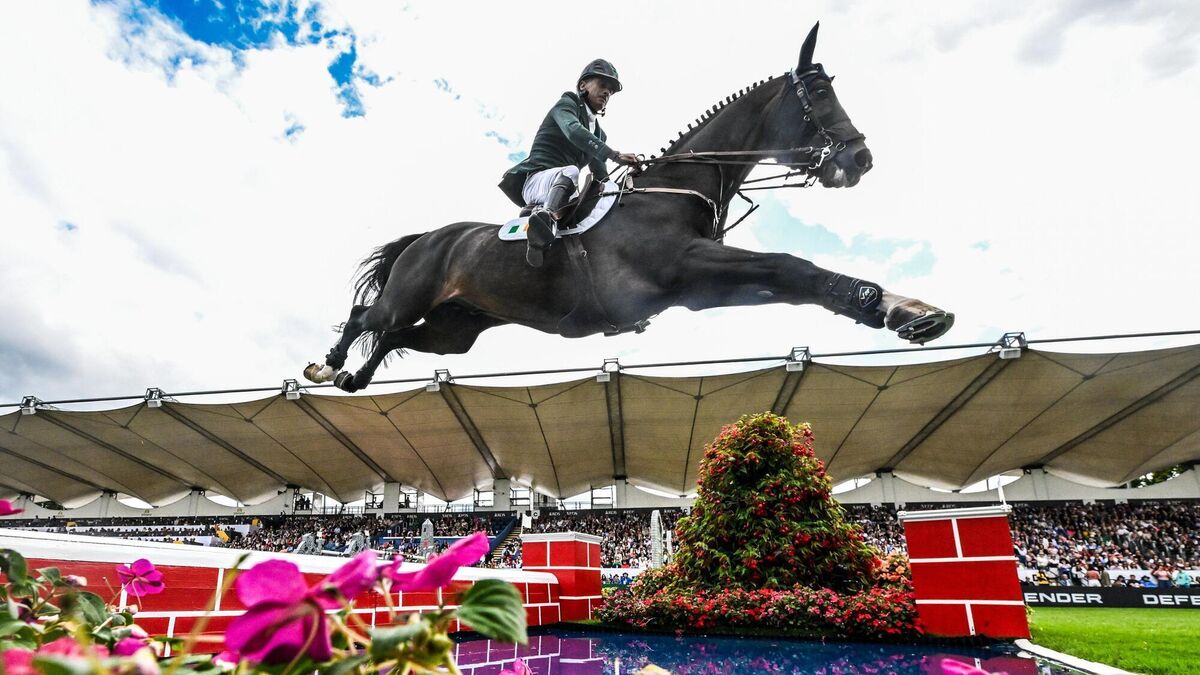 RAISING THE ROOD: Denis Lynch of Ireland, competing on Vistogrand, during Aga Khan Day at the Dublin Horse Show at the RDS Arena in Dublin. Pic: David Fitzgerald/Sportsfile