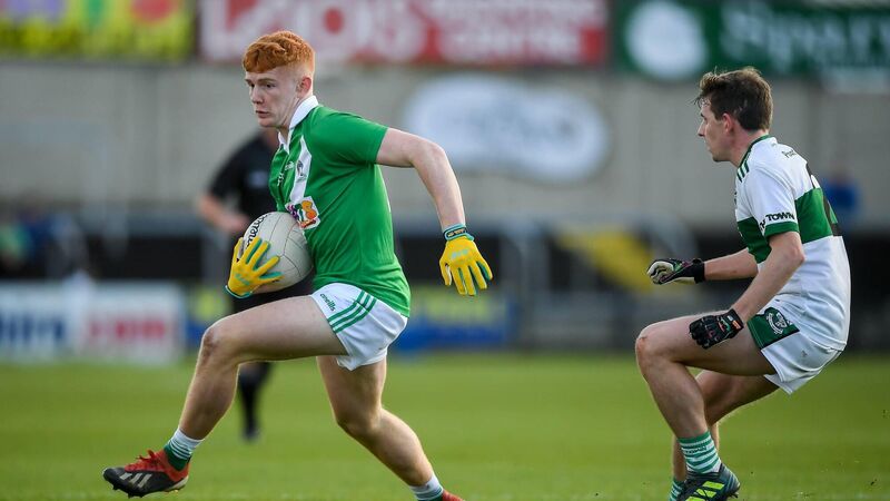 13 October 2019; Ross Bolger of Killeshin in action against Chris Finn of Portlaoise during the Laois County Senior Club Football Championship Final match between Portlaoise and Killeshin at OÂ’Moore Park in Portlaoise, Laois. Photo by David Fitzgerald/Sportsfile