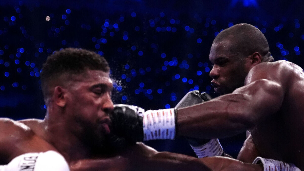 Anthony Joshua (left) and Daniel Dubois in the IBF World Heavy weight bout at Wembley Stadium, London. Picture: Bradley Collyer/PA Wire.Â