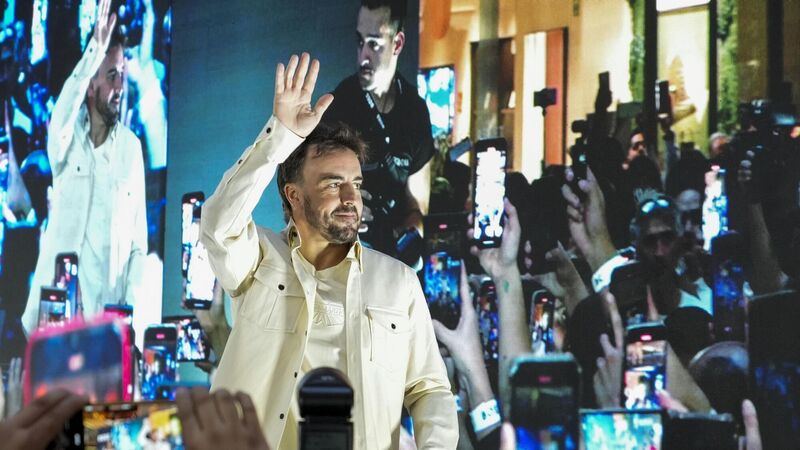 POPULAR ATTRACTION: Aston Martin driver Fernando Alonso of Spain waves during a promotional event in Mexico City, Wednesday, Oct. 23, 2024, ahead of the weekend Formula One Mexico Grand Prix auto race. (AP Photo/Moises Castillo)