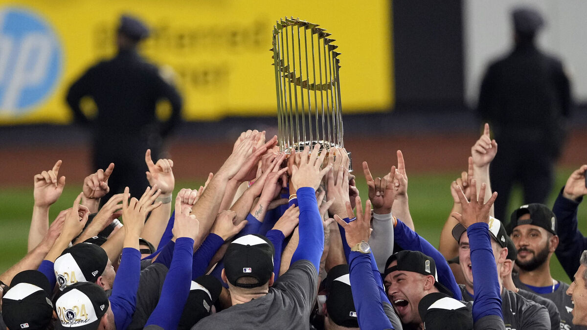The Los Angeles Dodgers celebrate their win against the New York Yankees in Game 5 to win the baseball World Series. Pic: AP Photo/Seth Wenig