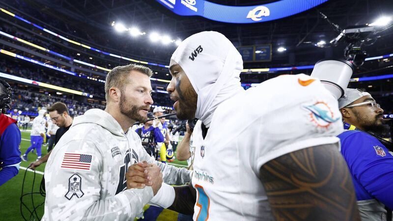 Tua Tagovailoa of the Miami Dolphins shakes hands with head coach Sean McVay of the Los Angeles Rams. Pic: Ronald Martinez/Getty Images)
