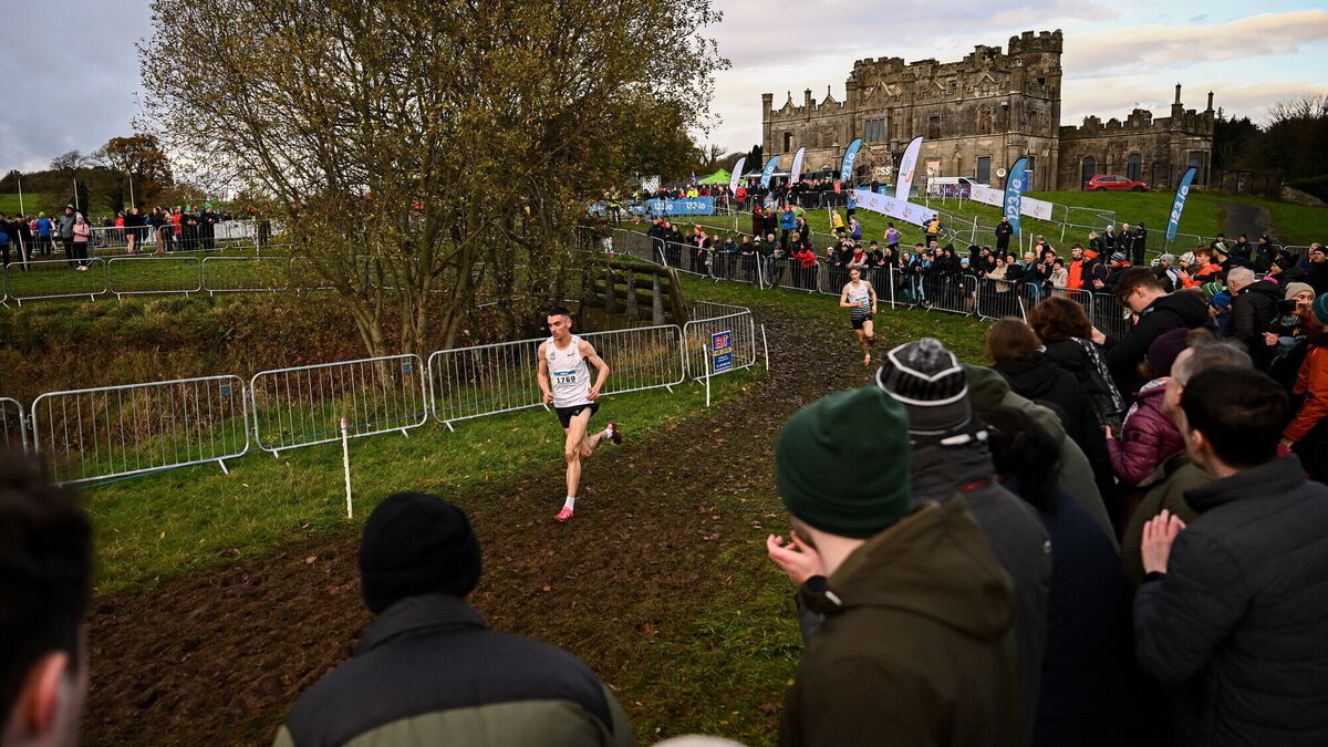 Eventual race winner Keelan Kilrehill of Moy Valley AC, Mayo, leads Nick Griggs of CNDR Track AC, Antrim, during the Senior Men's race during the 123.ie National Senior, Junior and Juvenile Even Age Cross Country Championships at Castle Irvine Estate in Irvinestown, Fermanagh. Pic: Ramsey Cardy/Sportsfile