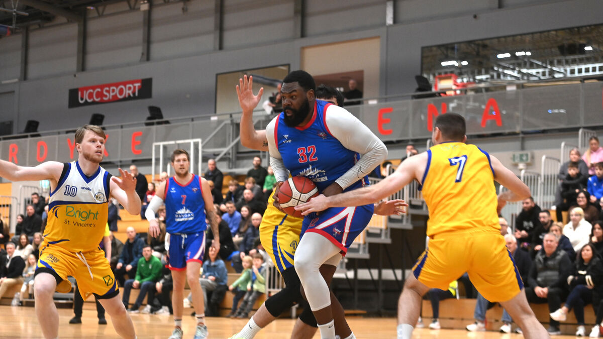 FINAL FOUR: Elijah Tillman , UCC Demons battles against St Vincent's. UCC Demons vs St Vincents at the Mardyke Arena in the Mens Superleague basketball. Pic Larry Cummins