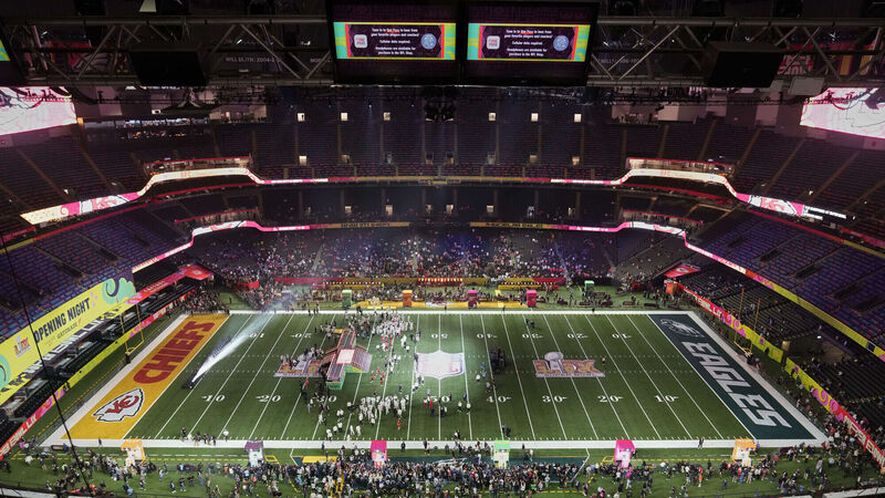 The Kansas City Chiefs participate during Super Bowl 59 Opening Night, Monday, Feb. 3, 2025, in New Orleans, ahead of the NFL football game between the Philadelphia Eagles and the Kansas City Chiefs Sunday. (AP Photo/David J. Phillip)
