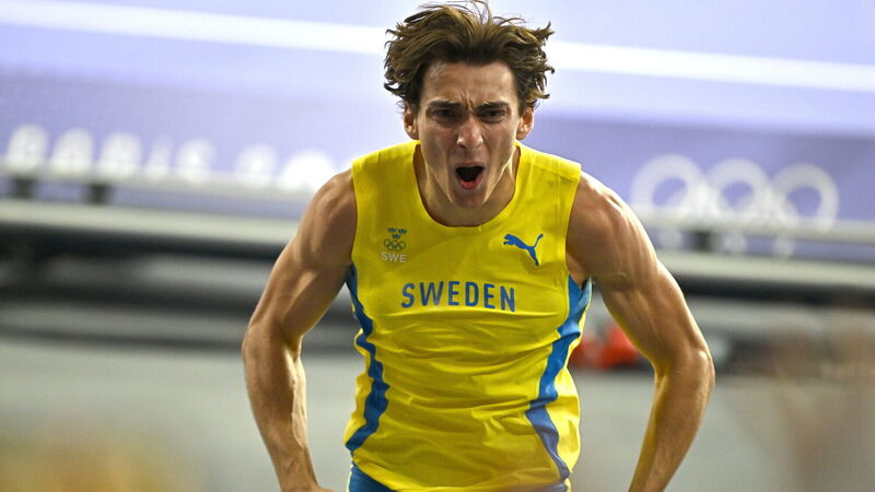 NEW WORLD RECORD: Sweden athlete Armand Duplantis celebrates after setting a new world record to win the men's pole vault at the at All Star Perche meet in Clermont-Ferrand. Pic: Sam Barnes/Sportsfile