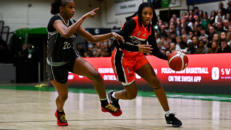 Destiny Strother of Killester in action against Mathilde Diop of Utility Trust St. Paul's during the Domino's Women's Super League final at the National Basketball Arena in Tallaght. Pic: Tyler Miller/Sportsfile