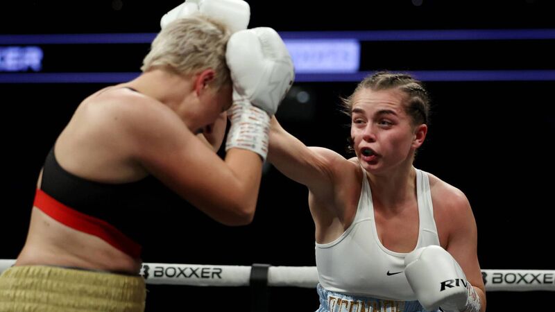 RIP: Georgia O'Connor, right, punches Joyce Van Ee during the Super Welterweight fight at The O2 Arena. Pic: Photo by James Chance/Getty Images
