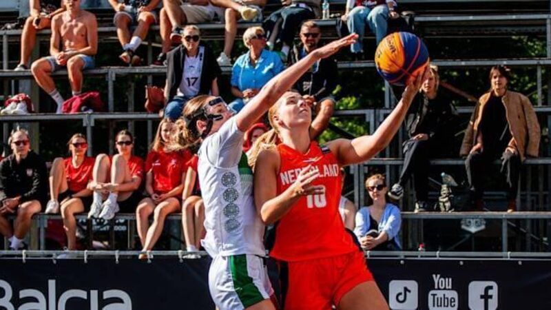 Abigail Rafferty challenges Noor Juusten of the Netherlands during the FIBA 3x3 Women's World Series. Pic: Basketball Ireland.