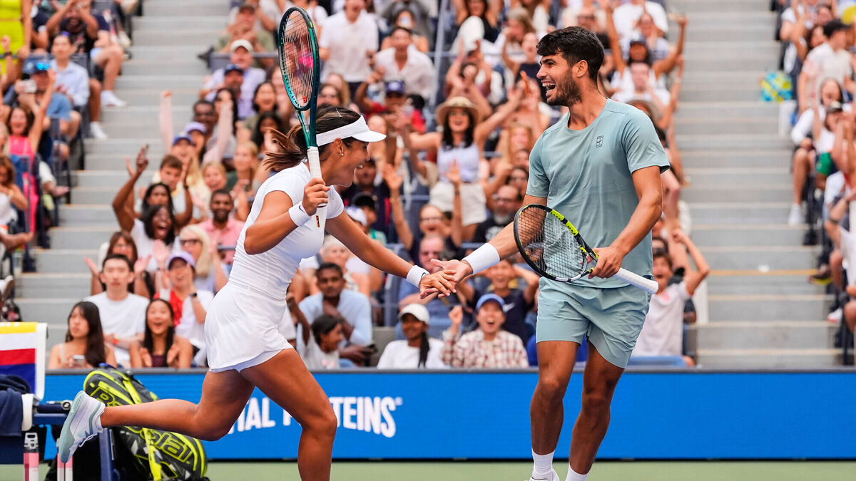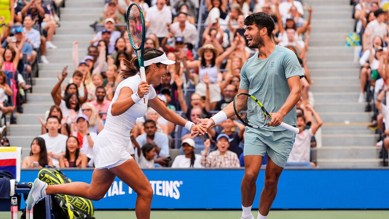 After many long months of discussion and anticipation, the doubles partnership between Emma Raducanu and Carlos Alcaraz came and went in the blink of an eye in a well‑populated Arthur Ashe Stadium.