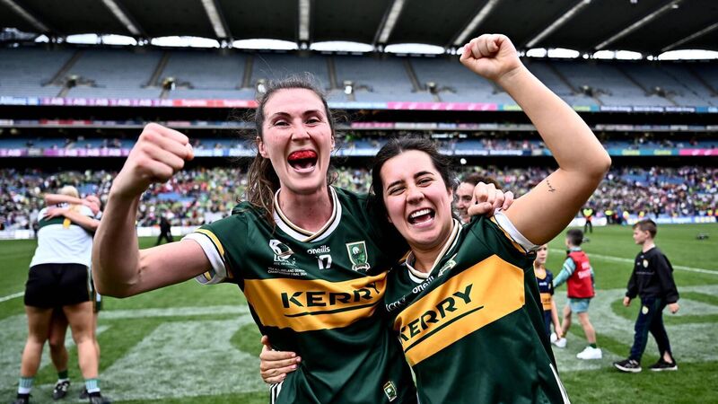 DUAL ACE: Lorraine Scanlon (left) celebrates Kerry's 2025 All-Ireland SFC final win over Galway with Jadyn Lucey. Pic: Piaras Ó Mídheach/Sportsfile