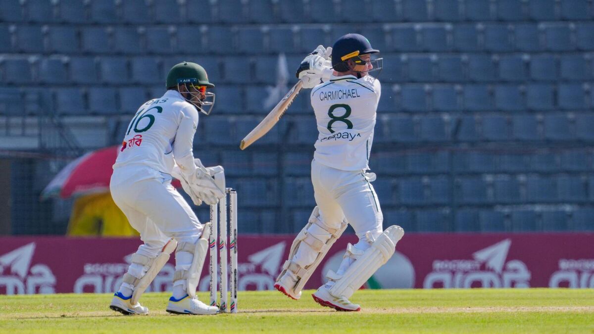 Cade Carmichael hit a confident 59 on debut, as Ireland battled hard to the end of day one of the Test match against Bangladesh.