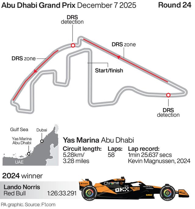 But Norris is set for a restless night with Verstappen, 12 points behind in the standings, holding the advantage heading into the decider and team-mate Piastri, 16 points adrift, alongside him in third.