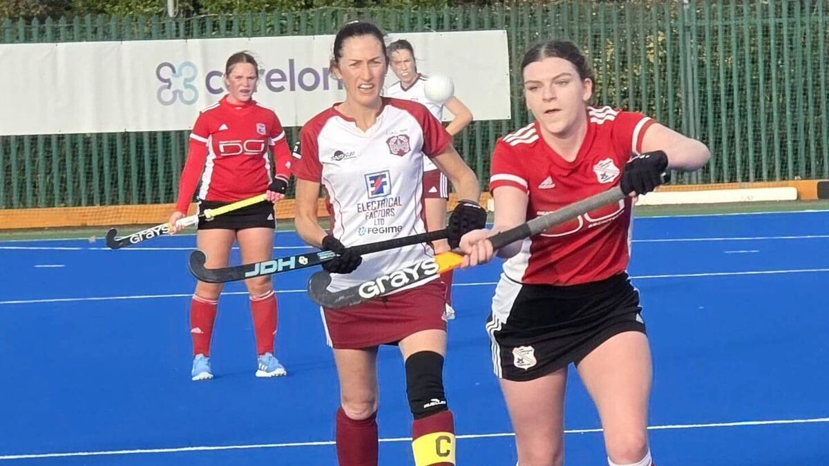 Joy Sampson on the ball for Harlequins in their 3-0 win over Catholic Institute on Saturday.