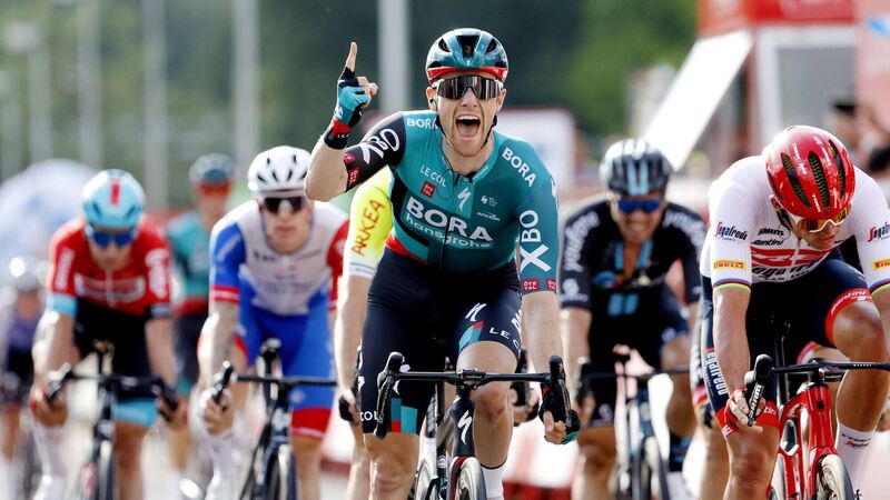 Sam Bennett of Ireland and then Team Bora - Hansgrohe celebrates winning during the 77th Tour of Spain 2022, (Photo by Bas Czerwinski/Getty Images)
