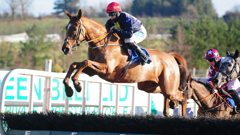 Rachel Blackmore and Kalkas on the way to victory in the āDavid Fitzgerald ā Take It Easeeā Maiden Hurdle at Limerick.
