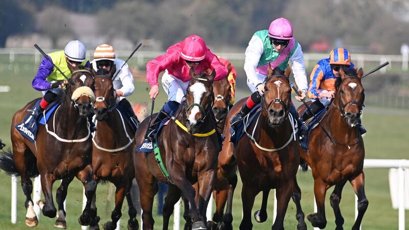 Layfayette and Oisin Orr, centre, win the Plusvital Devoy Stakes at Naas. Picture: Healy Racing.