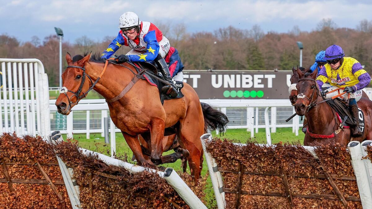 TOO GOOD: Tahmuras and Harry Cobden win the Unibet Tolworth Novices' Hurdle (Grade 1) at Sandown Park. Pic: Healy Racing