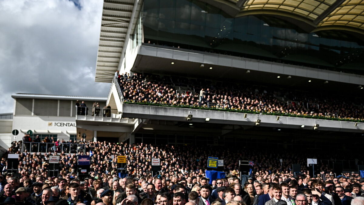 EARLY EXCITEMENT: Punters watch the first race during day one of the Cheltenham Racing Festival. Pic: Harry Murphy/Sportsfile