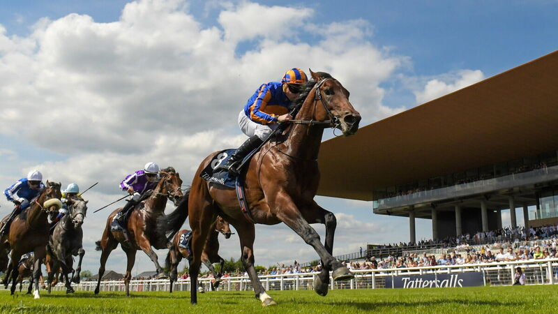 Paddington, with Ryan Moore up, on their way to winning the Tattersalls Irish 2,000 Guineas during the Tattersalls Irish Guineas Festival at The Curragh Racecourse in Kildare. Pic: Matt Browne/Sportsfile