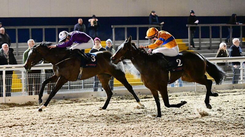 DENIED: Astronomically, right, was just touched off by Blanc De Blanc on his most recent visit to Dundalk but can get off the mark at the Louth venue on Friday night. Picture: Healy Racing