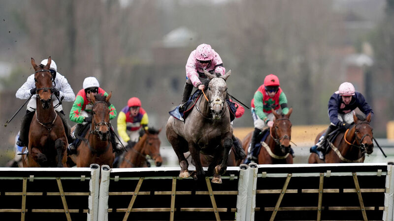 Scorpio Rising, ridden by Sean Bowen, on their way to winning the EBF Betfair 'National Hunt' Novices' Handicap Hurdle Final at Sandown Park Racecourse. Picture: John Walton/PA Wire.Â