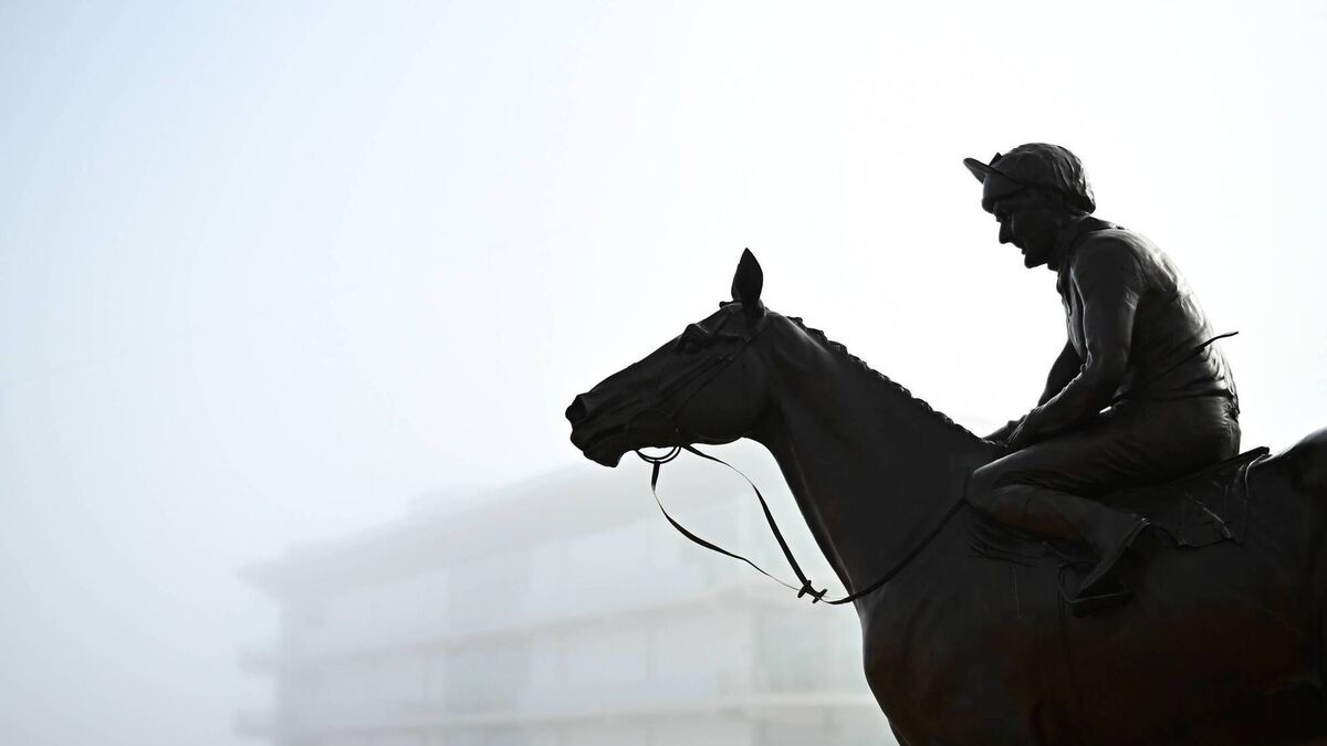 STATUESQUE: Immortalised at Prestbury Park, the statue of Dawn Run with Jonjo O'Neill aboard greets festival goers 40 years after an epic Gold Cup success. Pic: David Fitzgerald/Sportsfile