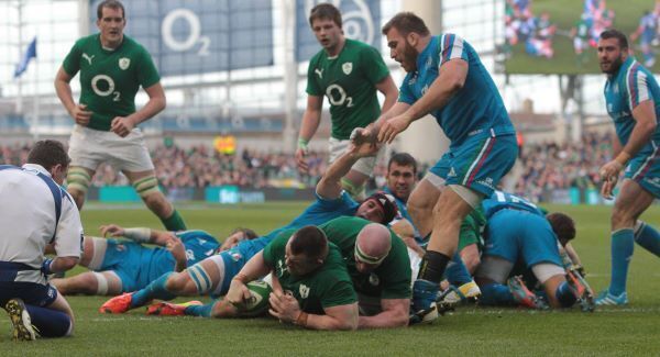 Italy scrum-half Tito Tebaldi was penalised for throttling Ireland captain Paul O’Connell off the ball after the restart.
