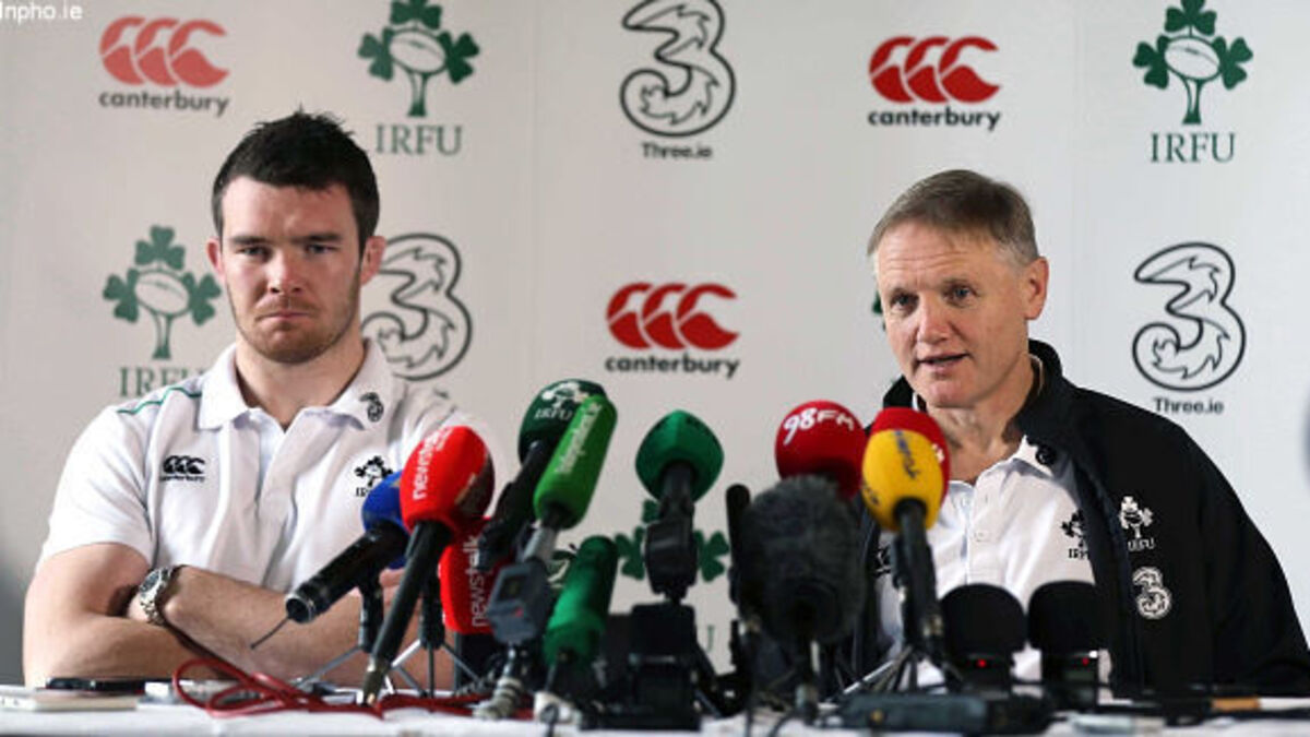 Peter O'Mahony and head coach Joe Schmidt at the Ireland Rugby Press Conference in Carton House. Picture: INPHO/Billy Stickland