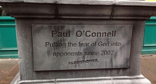 The statue is engraved with the words: “Paul O’Connell - Putting the fear of God into opponents since 2002”.
